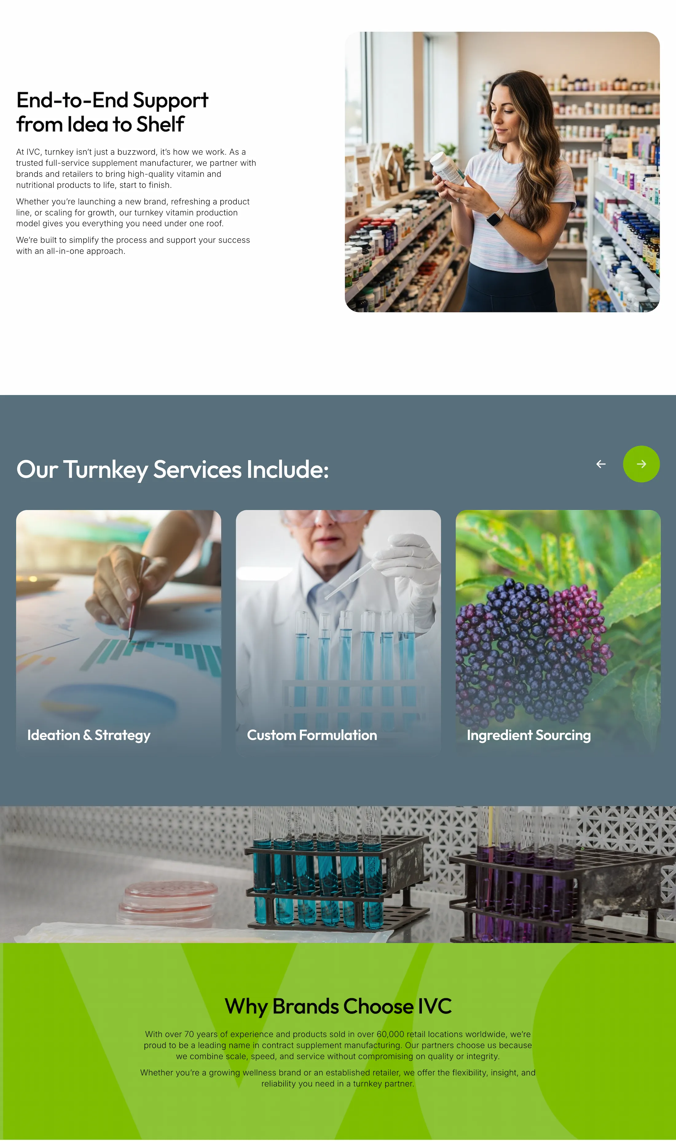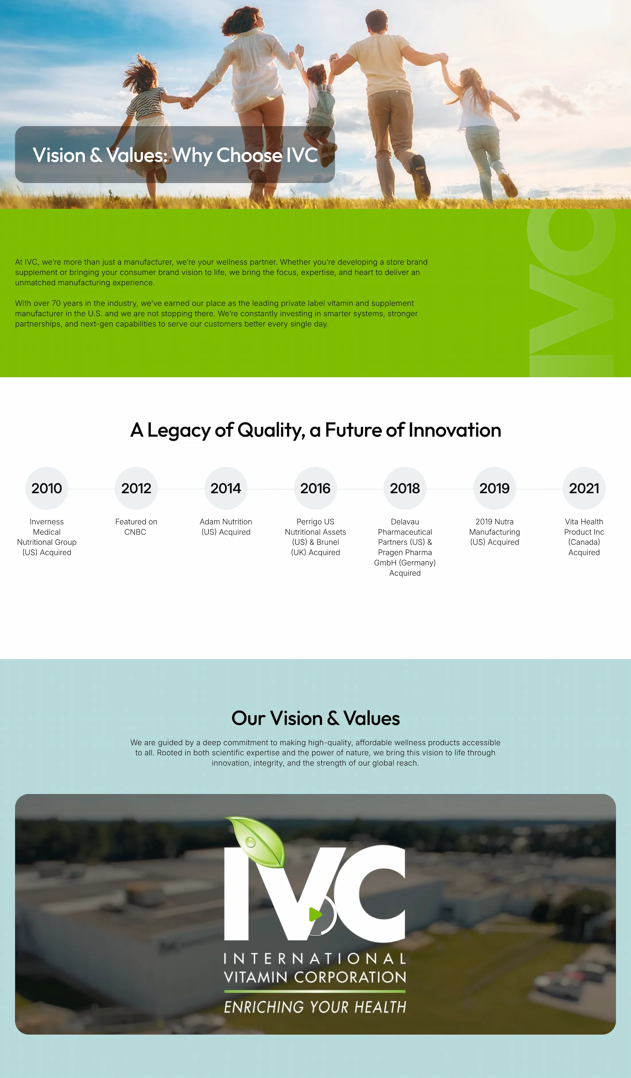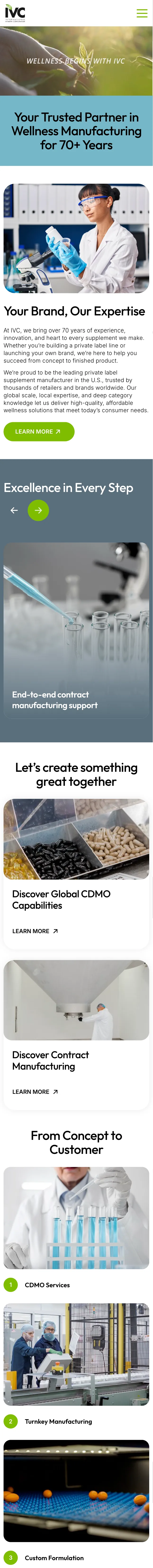 International Vitamin Corporation (IVC) is a global manufacturing organization with a diverse footprint of facilities and production capabilities. The company required a modern digital platform that accurately represents its operational scale, technical expertise, and corporate standards, while remaining accessible, lightweight, and easy to navigate across devices.