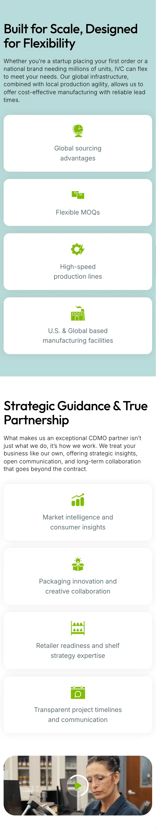 A key objective of the project was to present International Vitamin Corporation’s manufacturing capabilities in a way that communicates scale and sophistication without unnecessary complexity. Content was reorganized into clearly defined sections that guide users through processes, services, and operational strengths in a logical and intuitive sequence.
